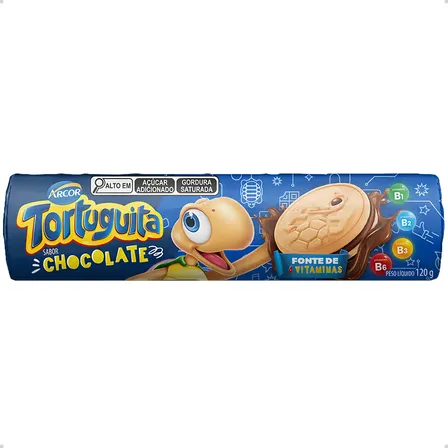 Delicie-se com o Biscoito Recheado Chocolate Tortuguita Arcor 130g! 🍫 Perfeito para a lancheira ou um mimo a qualquer hora. Sabor irresistível de chocolate e fonte de vitaminas B1, B2, B3 e B6 para a energia do dia. 🐢 Garanta já o seu e leve a diversão para casa! ✨