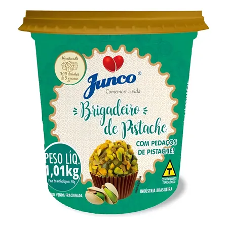 Delicie-se com o Brigadeiro de Pistache Junco! 💚 Pote de 1,01kg com pedaços crocantes para suas festas e eventos. Sabor irresistível e cremosidade perfeita. Rende até 200 docinhos! 🎉 Garanta já o seu e surpreenda a todos com essa doçura única!