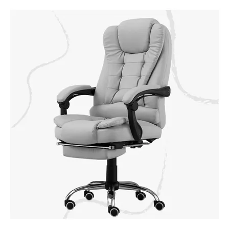 Transforme seu escritório com a Cadeira Presidente Giratória Reclinável! ✨ Conforto premium em couro sintético cinza, ideal para longas horas de trabalho ou estudo. Com design ergonômico e função reclinável, garanta bem-estar e produtividade. Perfeita para seu home office! 🚀