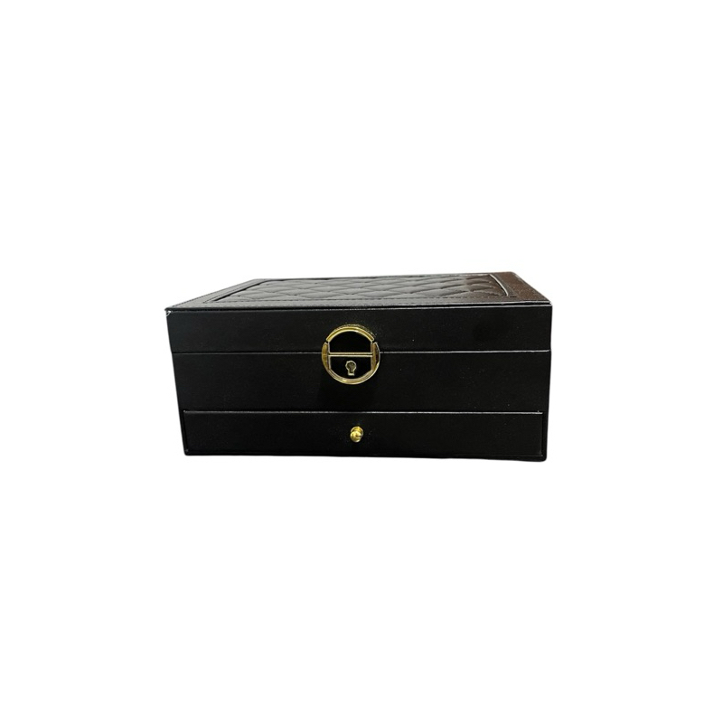 Organize suas joias com estilo! ✨ Esta caixa requintada de couro de alta qualidade possui 2 camadas para anéis, brincos e relógios. Mantenha tudo seguro e acessível. Perfeita para presentear ou para você! 🎁💎