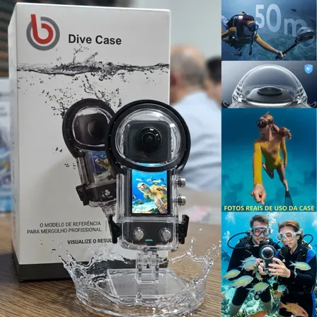 Capture o mundo subaquático com sua Insta360 X5! 📸 Esta caixa estanque profissional garante proteção total até 50m. Mergulhe fundo e registre momentos incríveis com clareza impecável. Perfeita para suas aventuras aquáticas! 🐢💦 Garanta já a sua e explore sem limites!