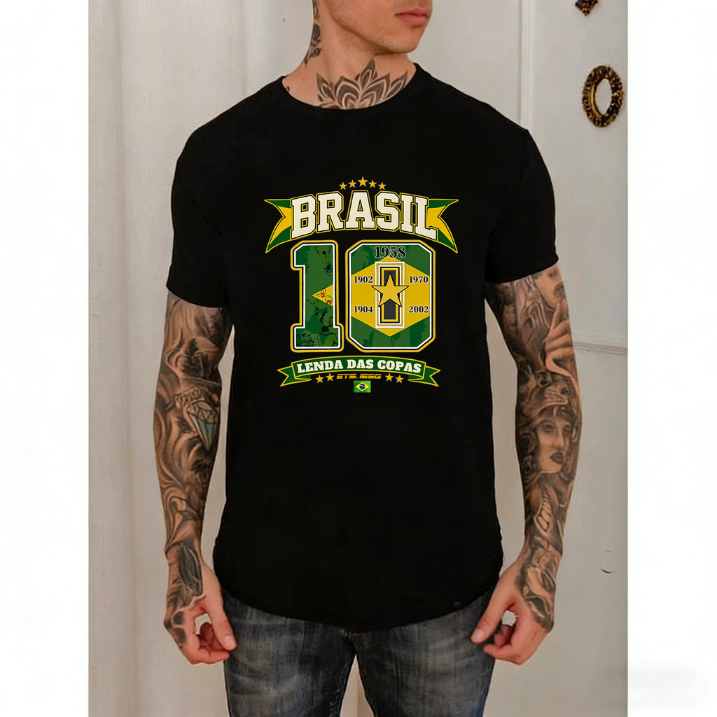 Mostre seu amor pelo Brasil com a camiseta ‘Lenda das Copas’! 🇧🇷 Vista a história e a paixão do futebol brasileiro com este design exclusivo. Perfeita para torcer ou para o dia a dia. Conforto e estilo garantidos! ✨ Garanta já a sua e celebre as vitórias!
