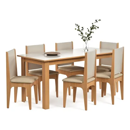 Conjunto Sala Jantar Sara 6 Lugares – Design Moderno e Conforto!