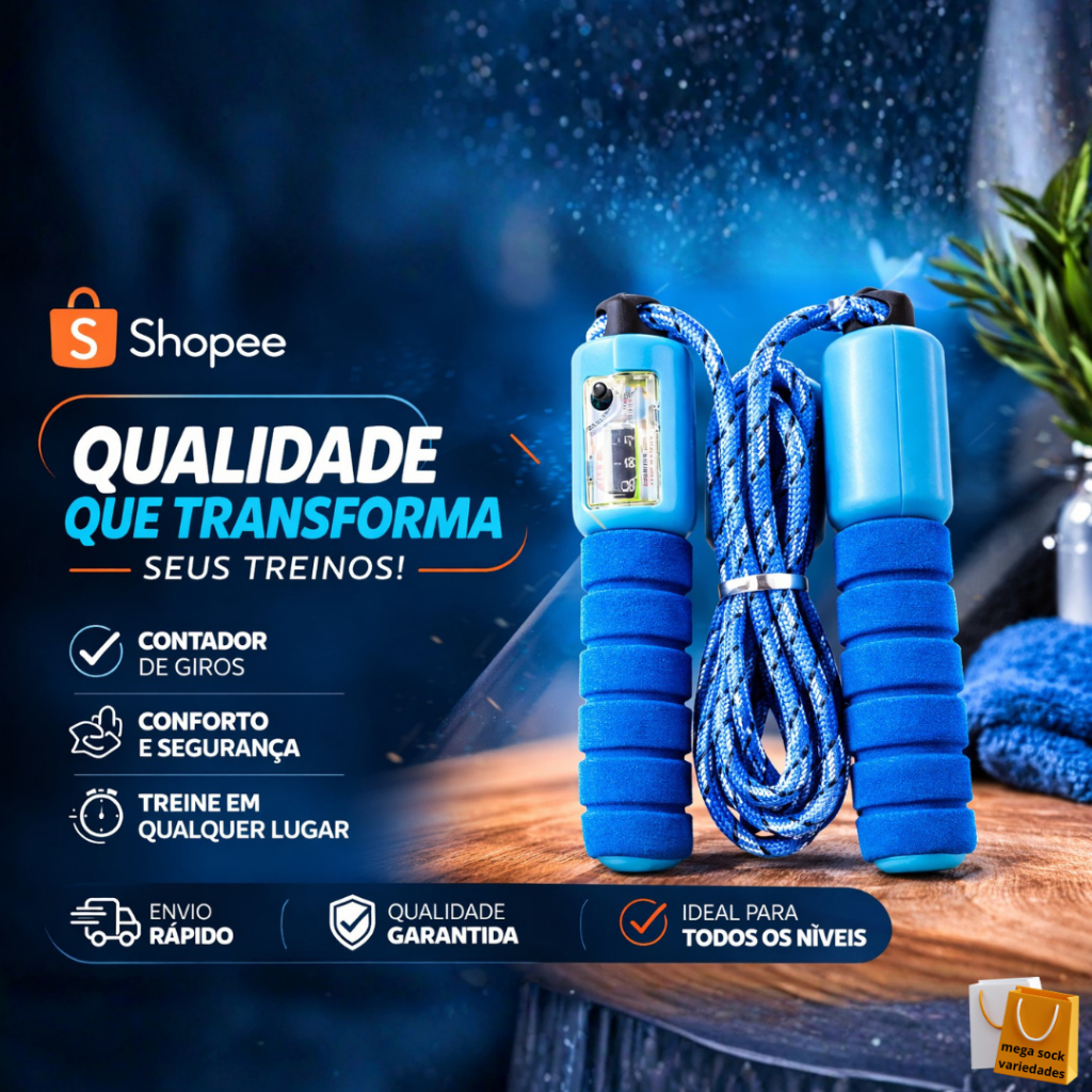 Transforme seus treinos com a Corda de Pular Profissional! Ideal para Crossfit, Academia e Exercício Funcional, ela possui contador de giros para monitorar seu desempenho. Desfrute de conforto e segurança com as alças ergonômicas, treine em qualquer lugar e alcance seus objetivos de saúde e fitness. Qualidade garantida para todos os níveis!