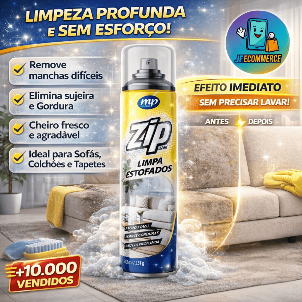 Transforme seus estofados sem esforço! ✨ A Espuma Mágica Zip Clean remove manchas difíceis, sujeira e gordura com efeito imediato. Limpeza a seco para sofás, colchões e tapetes, deixando um cheiro fresco. Não precisa lavar! Garanta já a sua e renove seu lar! 🛋️🧼