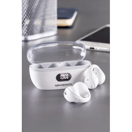 Experimente o Fone Bluetooth 5.3 Openear Newdragon! 🎧 Condução óssea para conforto e segurança. Perfeito para esportes, academia, corrida e games. Display LCD digital, estéreo e compatível com iPhone/Android. Leve e confortável para o seu dia a dia. Garanta já o seu! ✨