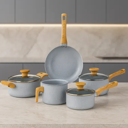 Transforme sua cozinha com o Jogo de Panelas Mimo Style! 🍳 Antiaderente cerâmico grafite, 5 peças para todas as suas receitas. Cozinhe com saúde e estilo, sem grudar! ✨ Design moderno e elegante. Garanta já o seu conjunto completo e eleve sua experiência culinária! 🧑🍳