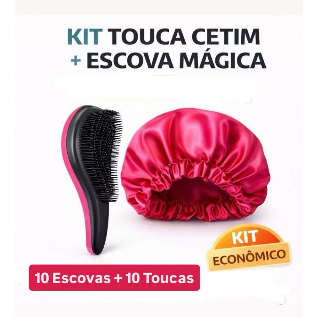 Transforme sua rotina capilar! Kit com 10 Escovas Mágicas e 10 Toucas de Cetim para desembaraçar sem quebrar e proteger seus fios do frizz. Perfeito para lembrancinhas de aniversário ou para um cuidado pessoal completo. Cabelos saudáveis e brilhantes garantidos!