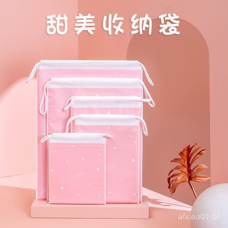 Mantenha suas roupas e sapatos impecáveis e organizados com nosso kit de bolsas de armazenamento. Perfeito para viagens ou para otimizar seu guarda-roupa, estas bolsas portáteis oferecem privacidade e proteção. Com design charmoso de corações e fechamento prático por cordão, são leves e seladas, facilitando sua vida na hora de arrumar. Simplifique sua organização!