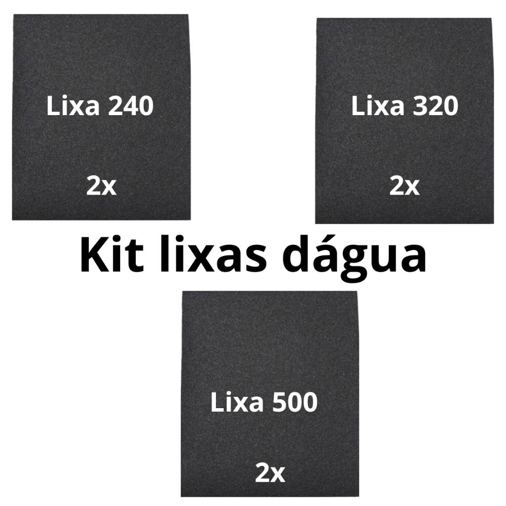 Kit Lixas D’água Essencial! ✨ Grãos 240, 320 e 500 para acabamento perfeito em metal, plástico, pintura e funilaria. Escolha 2, 4 ou 6 folhas por grão e garanta resultados profissionais. Ideal para polimento e preparo de superfícies. Tenha o melhor em suas mãos! 🛠️🚗