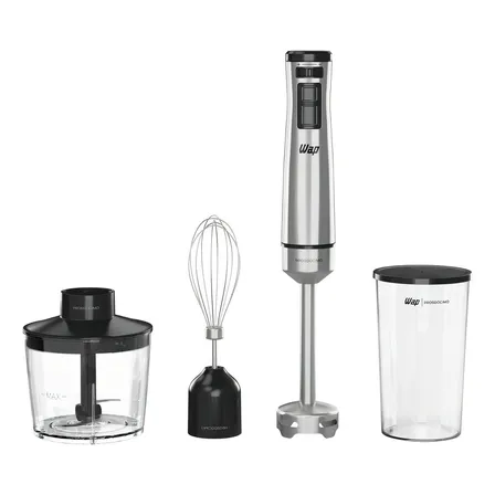 Transforme sua cozinha com o Mixer 3 Em 1 Wap WM1! ✨ Processador, mixer e batedor de claras em um só aparelho portátil de inox. Prepare receitas incríveis com facilidade e rapidez. Versatilidade e potência para o seu dia a dia! 🚀🍳