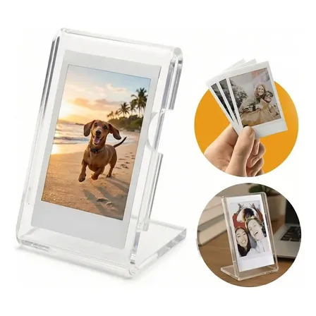 Exponha suas memórias Instax Mini com estilo! 📸 Este porta-retrato de cristal transparente é perfeito para suas fotos 8,6×5,4 cm. Design moderno e elegante para decorar qualquer ambiente. ✨ Garanta já o seu e reviva momentos especiais! ❤️
