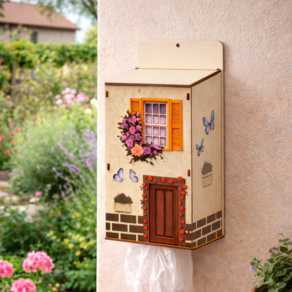 Transforme sua cozinha ou lavanderia! 🏡 Este puxa saco de parede em MDF, com design de casinha decorativa e adesivada, organiza suas sacolas plásticas com charme. Resistente e super prático, é a solução perfeita para um ambiente mais bonito e funcional. ✨ Diga adeus à bagunça!