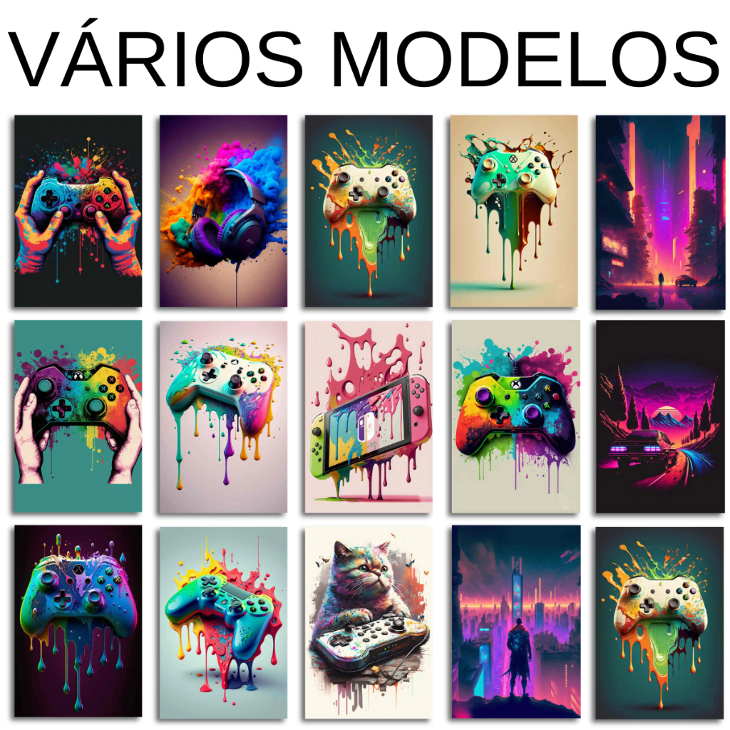 Transforme seu quarto gamer com quadros vibrantes! 🎮 Decoração Full HD com designs exclusivos de headsets, controles e frases épicas. Perfeito para jogadores que amam estilo e personalidade. Escolha seu modelo favorito e eleve seu setup! ✨ Cores intensas e qualidade premium. Garanta já o seu! 🚀