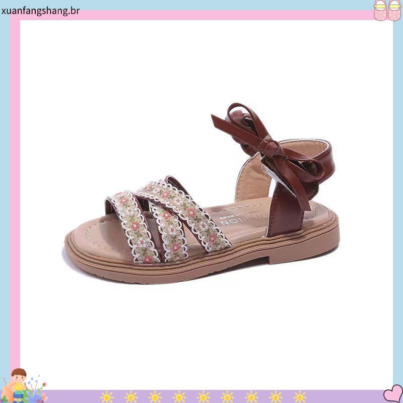 Sandália Infantil Menina: Estilo Romano com Flores e Laço | Conforto e Moda Bebê